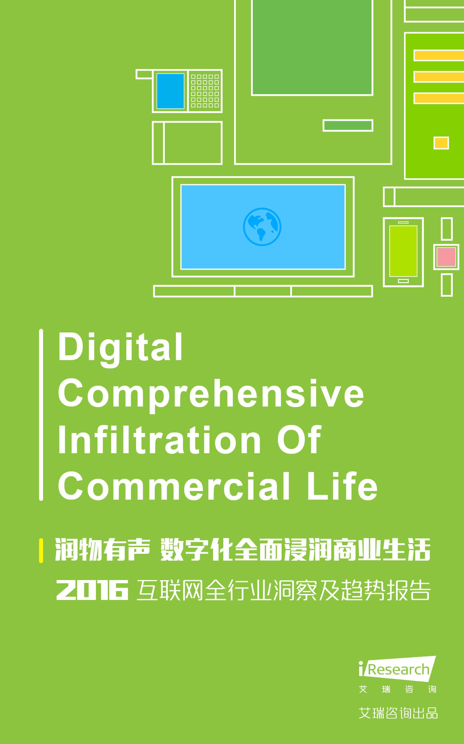 基于艾瑞大数据研究方法整理得出的趋势报告,观察互联网的角色变迁、互联网对信息、交易、服务的影响、以及新科技带来的行业裂变。报告内容涵盖社交、视频、广告、金融、电商、O2O、文娱游戏、云计算及人工智能等垂直领域的总结,并对人工智能在行业的应用前景,进行了大胆的想象。